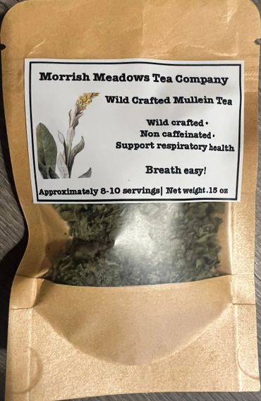 Wild Crafted loose leaf Mullein herbal tea, is known for expelling mucous and anti-inflammatory properties. This caffeine free herbal tea is mild, earthy and calming making it a healthy choice for supporting respiratory health.