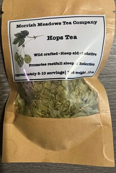 This Hops herbal tea crafted from homegrown hops here at Morrish Meadows! this tea offers a naturally calming and slightly bitter flavor profile with floral herbal notes. Hops are traditionally used to support relaxation, promote restful sleep, and ease stress! don't forget to add your favorite honey