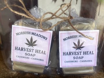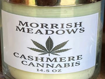 Morrish Meadows Cannabis Cashmere 3 wick 14.5 oz candle, like our Harvest heal soap adds another level to your aromatherapy experience! Our candles will enhance and add ambiance as well as memorable scent to any room you choose:)
