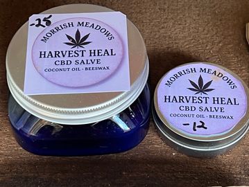 Morrish Meadows Topical CBD Salve, Our salve contains our own home grown CBD, beeswax from our bees, organic cold pressed coconut oil, with only the best sourced fragrance oil Cannabis and Cashmere! Soothes sore muscle’s and arthritic pain,anti-inflammatory, chronic pain. Not to be used by children or pregnant woman. If taking certain medications consult your healthcare provider before use. Hemp products can result in drug test failure. our CBD salve can be used for pain in dogs and cats.